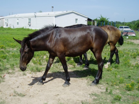 Acceptable left-side view of mule. Acceptable right-side view of mule Poor left-side view of mule. Animal is not square to camera, background is cluttered. Since the left-side photo goes on your certificate, this is what would be on your animal's permanent record. |