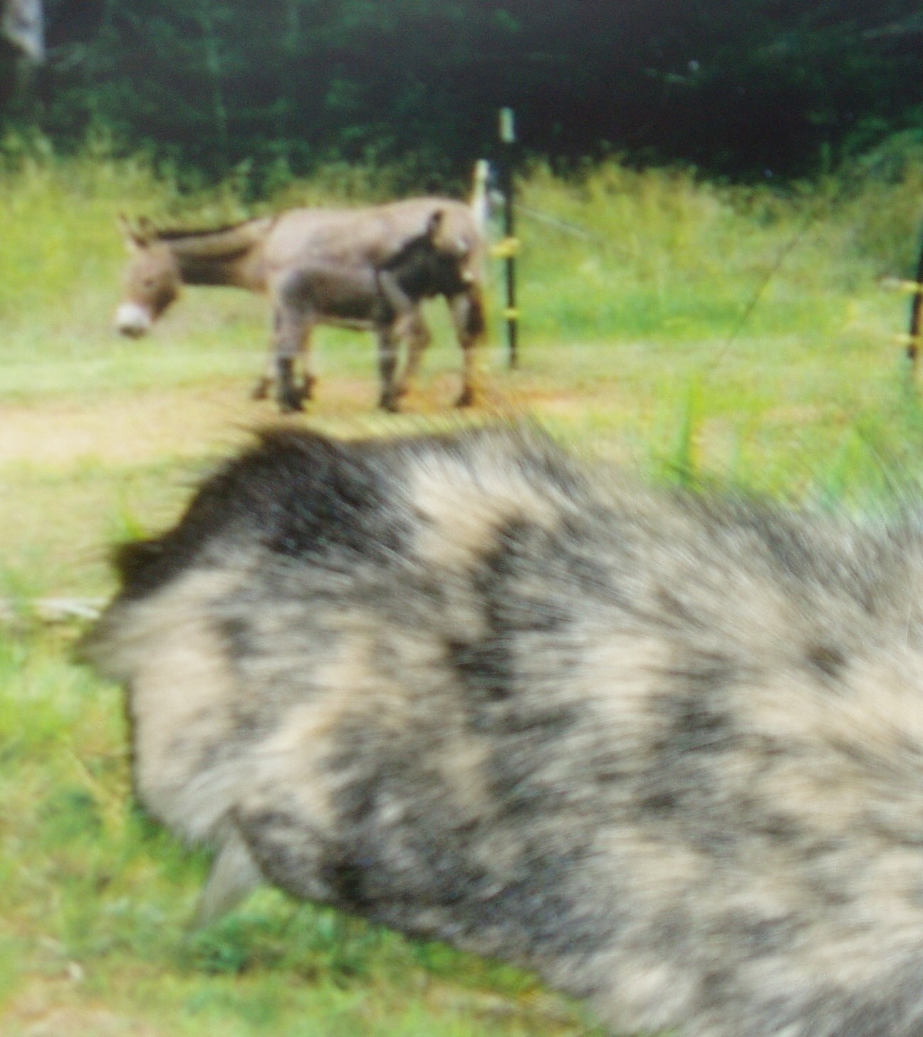 This is Caitlin's paw on an actual photo. Her paw is about four times life size in this photo. The donkey to be registered was the foal, not the mother donkey. This photo is too small to be of use as ID for the animal. A good note is the donkey should be about the size of a credit card in the photo. |